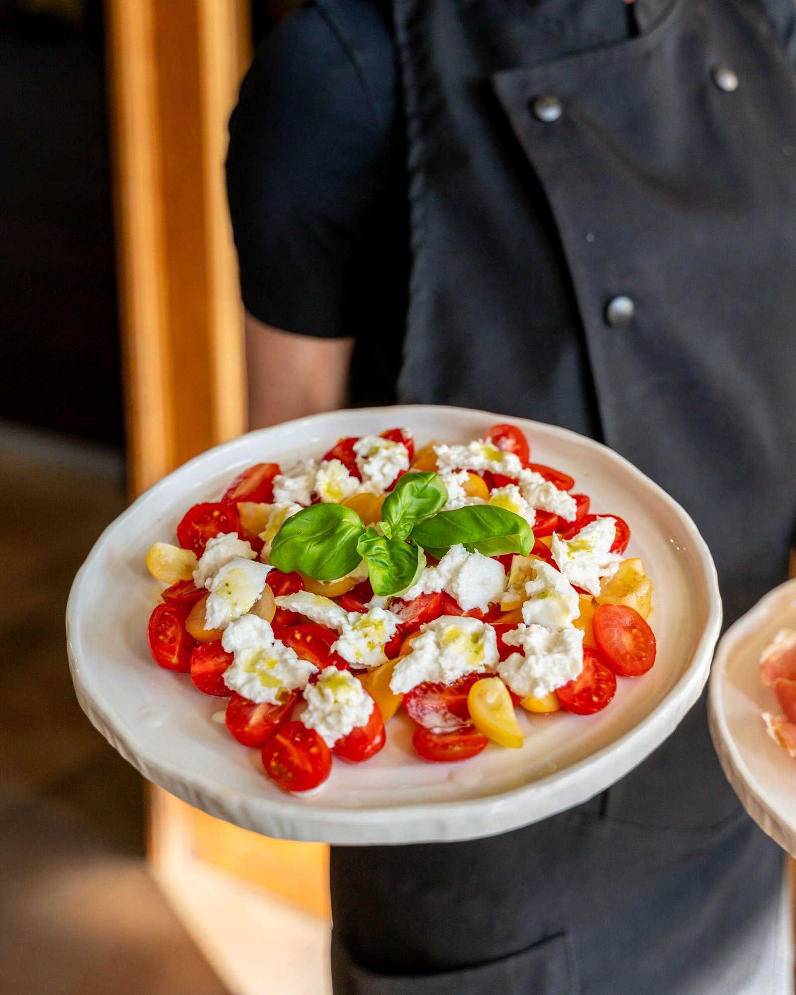 la caprese: stracciatella di burrata, ciliegino variopinto, olio al basilico